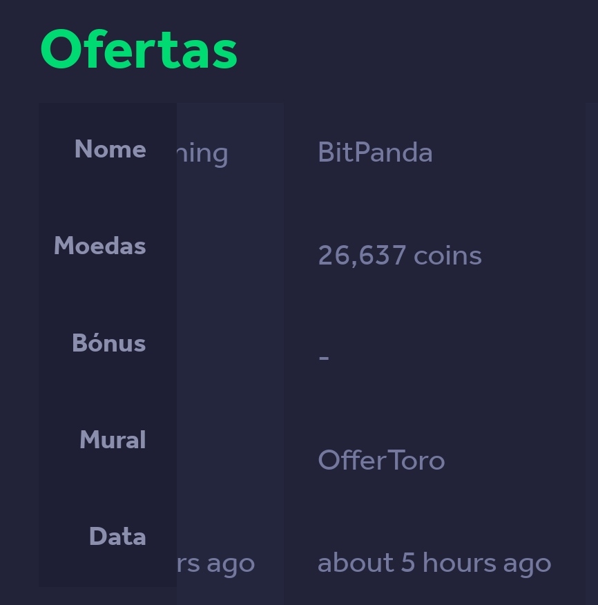 Alguém me pode confirmar se a oferta da Bitpanda já desapareceu da Freecash? Como eu já a fiz não me aparece.