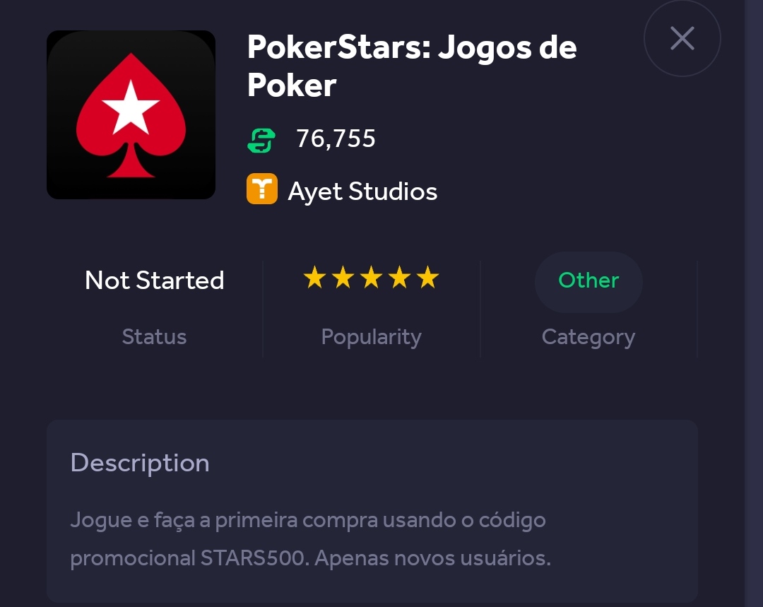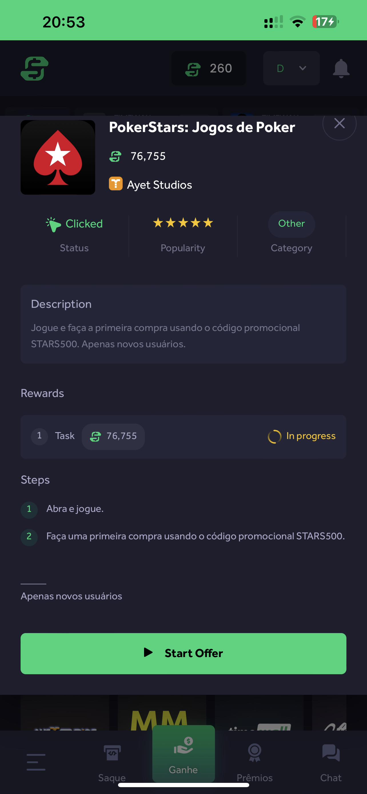 E há várias ofertas para a PokerStars que pagam valores muito diferentes. A que paga mais agora é a MMWall que paga os tais 97.22$