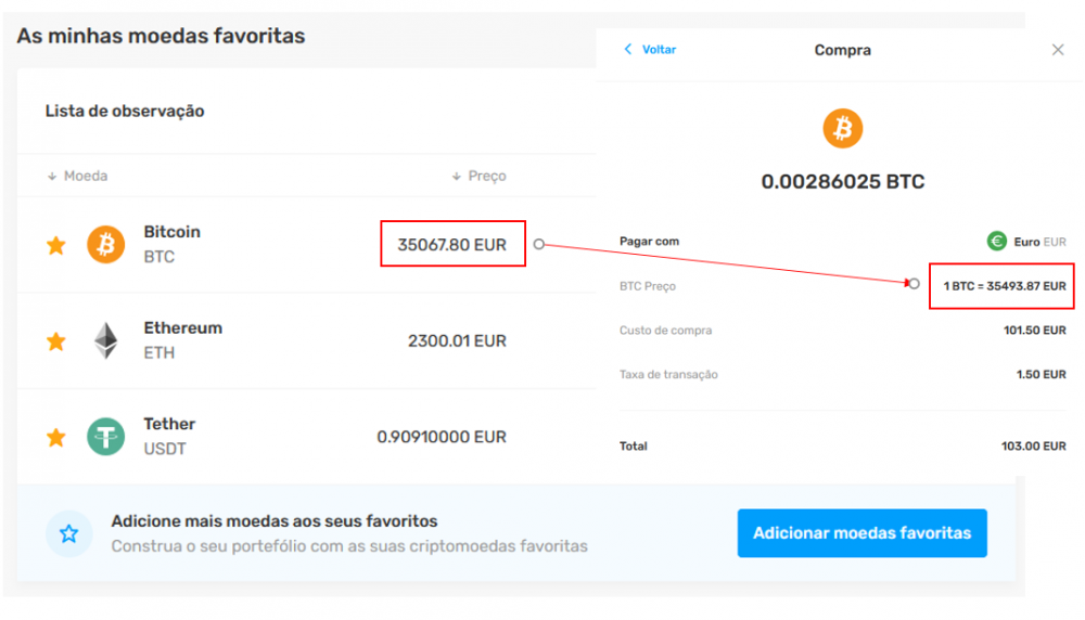 3. Comprar BTC com os 100EUR -> Deverá gerar um bónus imediato em BTC
