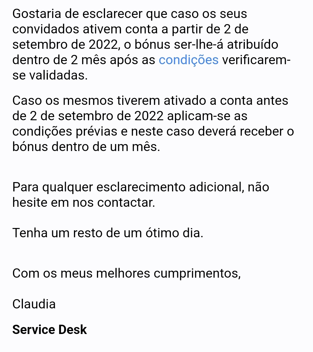 • Depois de o referido cumprir com os requisitos, a Degiro pode demorar 2 meses para pagar o bónus