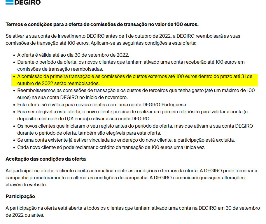 • O referido não pode ter sido cliente Degiro nos 24 meses anteriores à data de adesão.