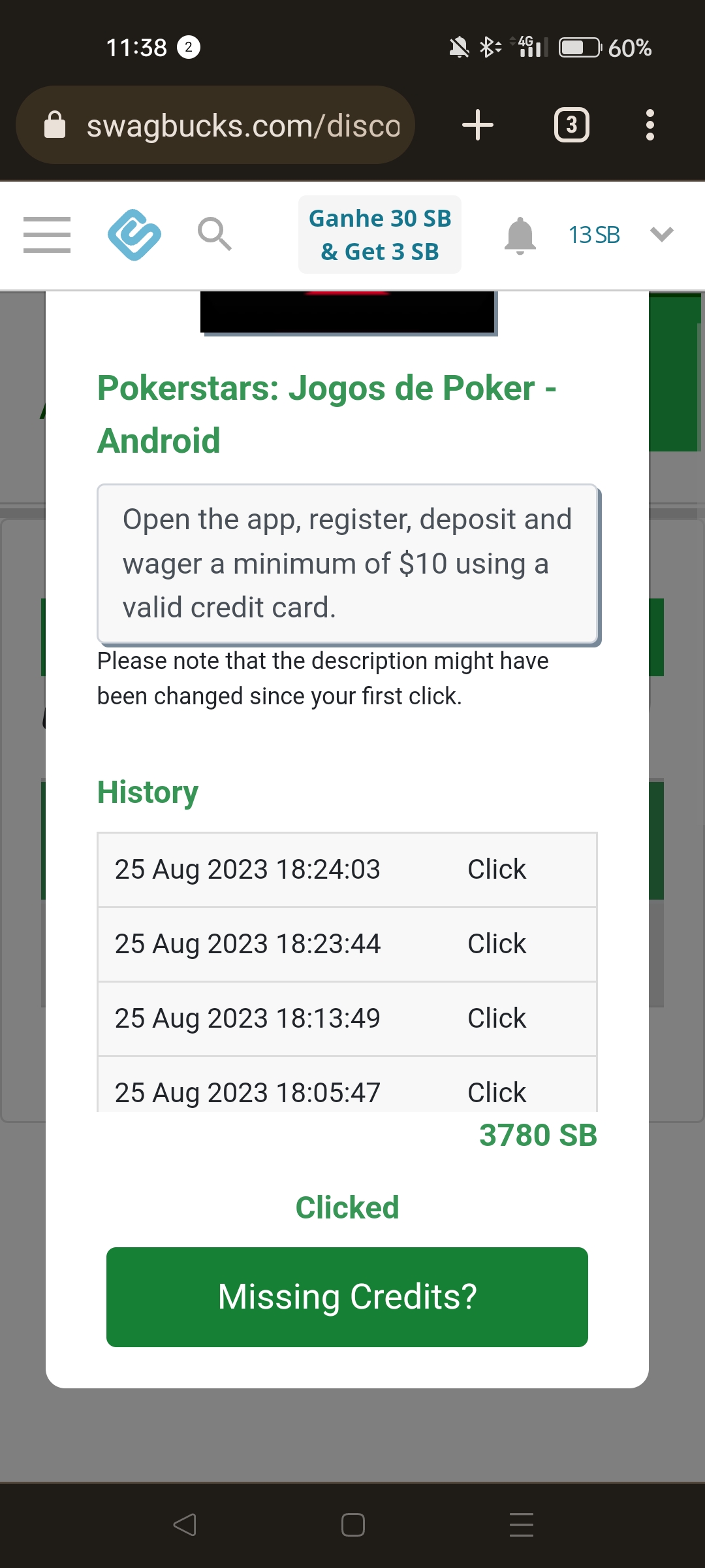 • Swagbucks | Ganhar $91.80+$3 por abrir conta e depositar 10€ na Pokerstars