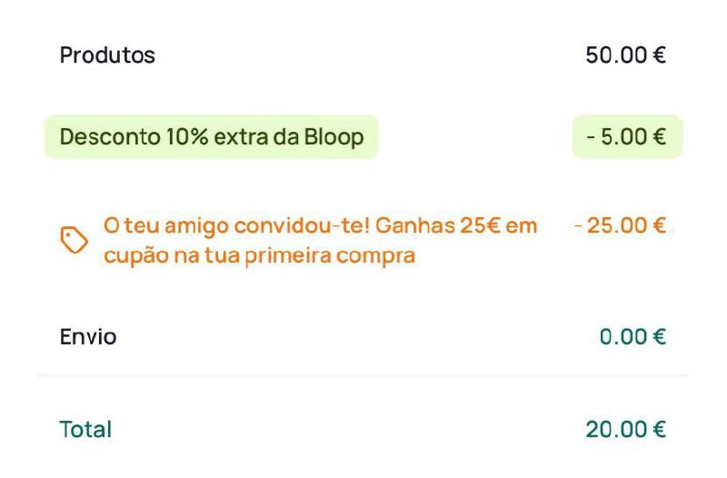 PS: A bloop tambem dá um extra de 10% a quem deixar uma review ou seja 60% desconto