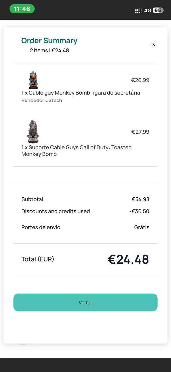PS: Acima de 30€ (Após o desconto aplicado) não pagas portes
