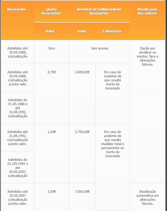 No caso da subscrição por quotas mensais, está incluída a cobertura temporária do risco de morte do Associado que assegura o pagamento daquelas quotas e por morte deste, garantindo, assim, ao(s) beneficiário(s), o recebimento das frações vincendas nas datas dos respetivos vencimentos.