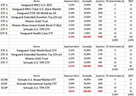 Que acham destas 3 carteiras? Quanto mais leio, mais fico inclinado para a 3ª...simples e baixo custo.