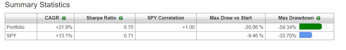 Nos últimos 10 anos o SPY pelo etf replay teve 14.5% de CAGR com 17% de volatilidade anualizada e 33.7% de MAX DD.