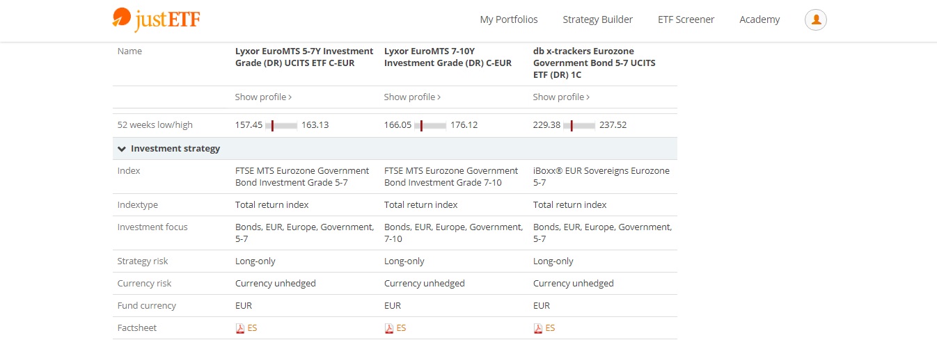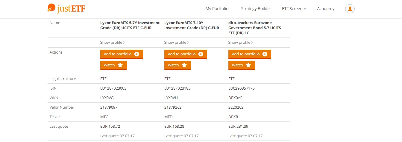 A tua escolha dos ETF parece-me correcta. Para pensares no assunto sugiro, como alternativa ao MTX, o MTC Lyxor EUROMTS 5-7Y Investment Grade (DR) UCITS (EUR).