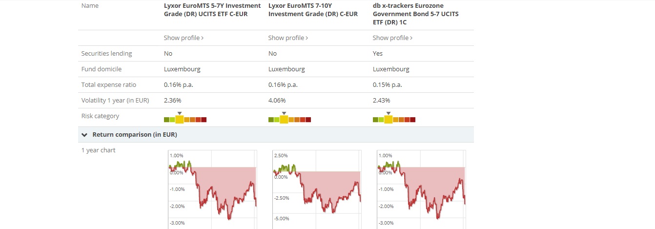 Olhando para a consistência do fundo e a volatilidade parece que a melhor escolha é mesmo o MTC - Lyxor EuroMTS 5-7Y Investment Grade (DR) UCITS ETF C-EUR.