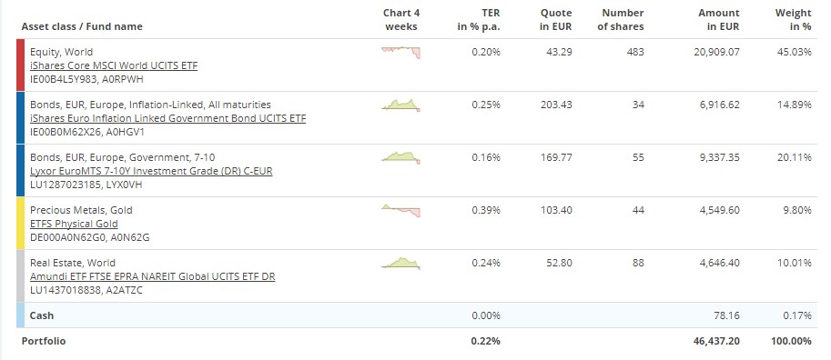 45% IWDA + 10% EPRA + 15% IBCI + 20% MTD + 10% VZLD (carteira actual)
