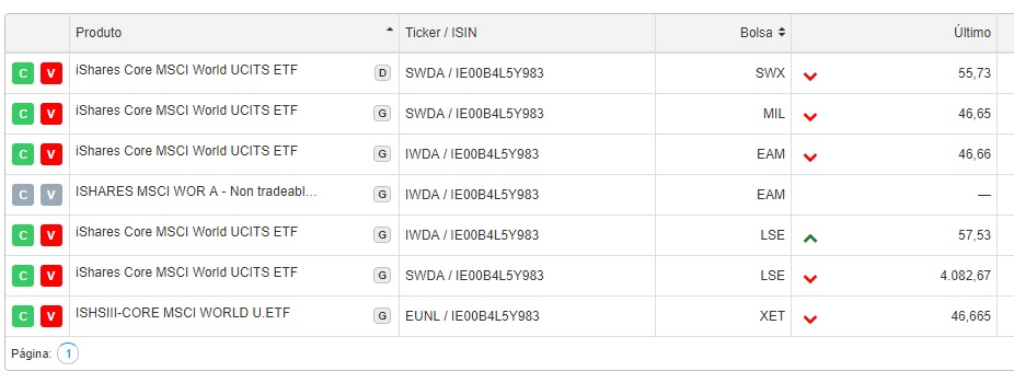 Para teres isenção de comissaõ tens de comprar na de Amsterdam (Ticker: IWDA), o terceiro da lista.
