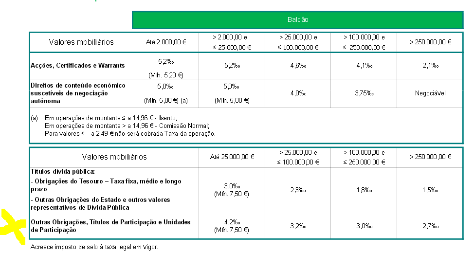 Título Emitente Cotação % YTM % Cupão % Maturidade O.T. 5% Junho 15/06/2012 REPÚBLICA PORTUGUESA 99,9200 5,1646 5,0000 15-06-2012 O.T. 5,45% 23/09/2013 REPÚBLICA PORTUGUESA 90,0950 12,6065 5,4500