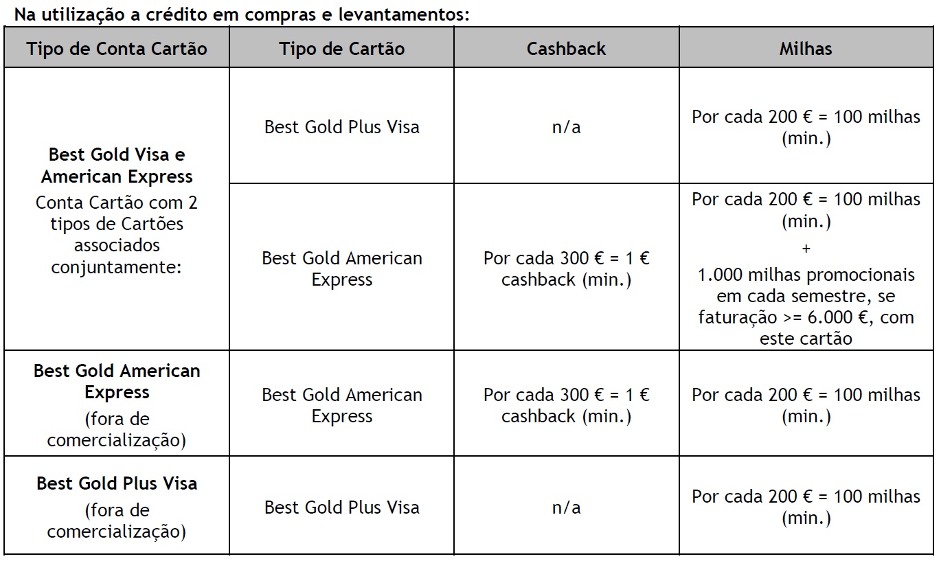 Ora, parece que a premiação do cartão Best Gold American Express foi alterada no que diz respeito ao cashback, sendo que, só haverá lugar à mesma a partir de 300€ em levantamentos a crédito e/ou compras. Mínimo 300€ = 1€.:P