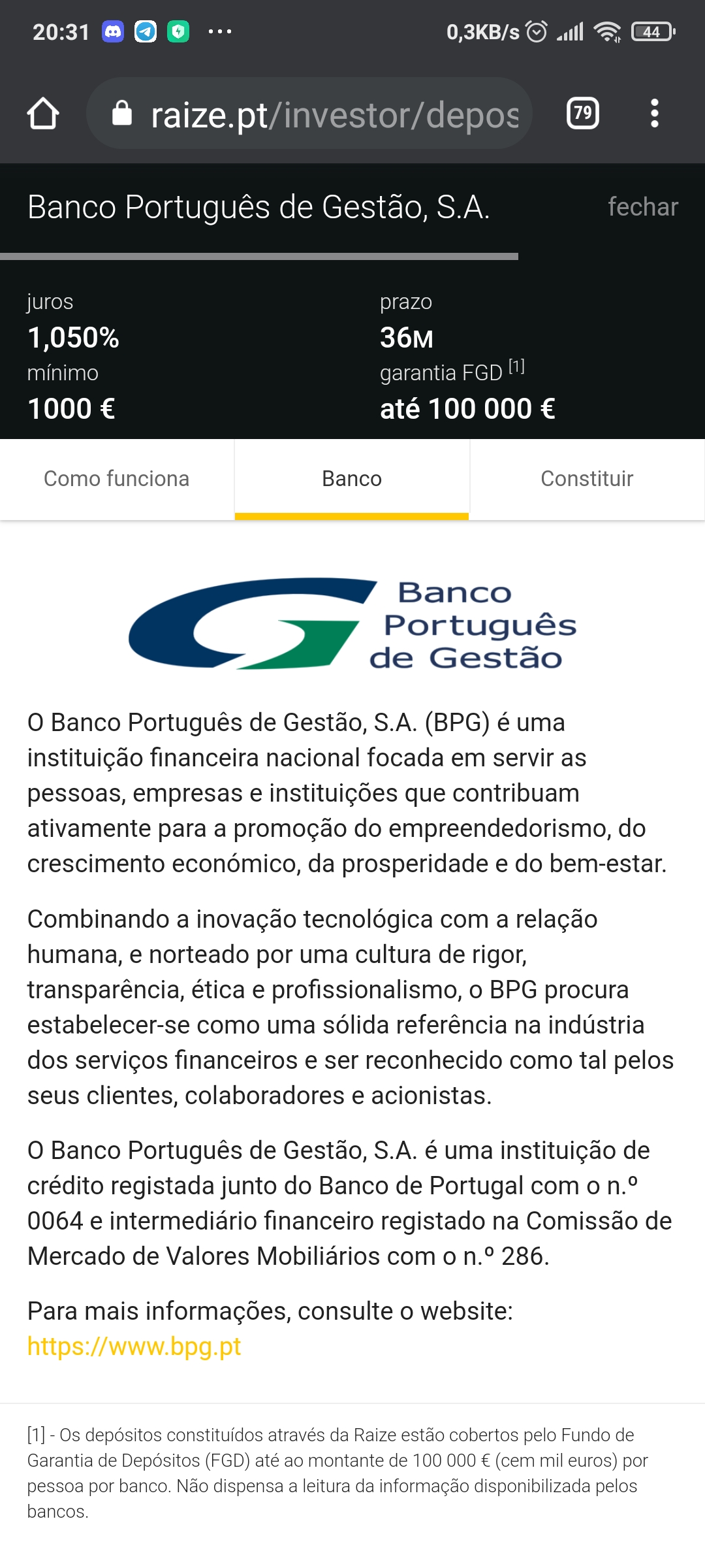 Está disponível diretamente no banco (https://www.bpg.pt/particulares/) com 1,10% TANB em vez dos 1,05% dos teus screenshots.