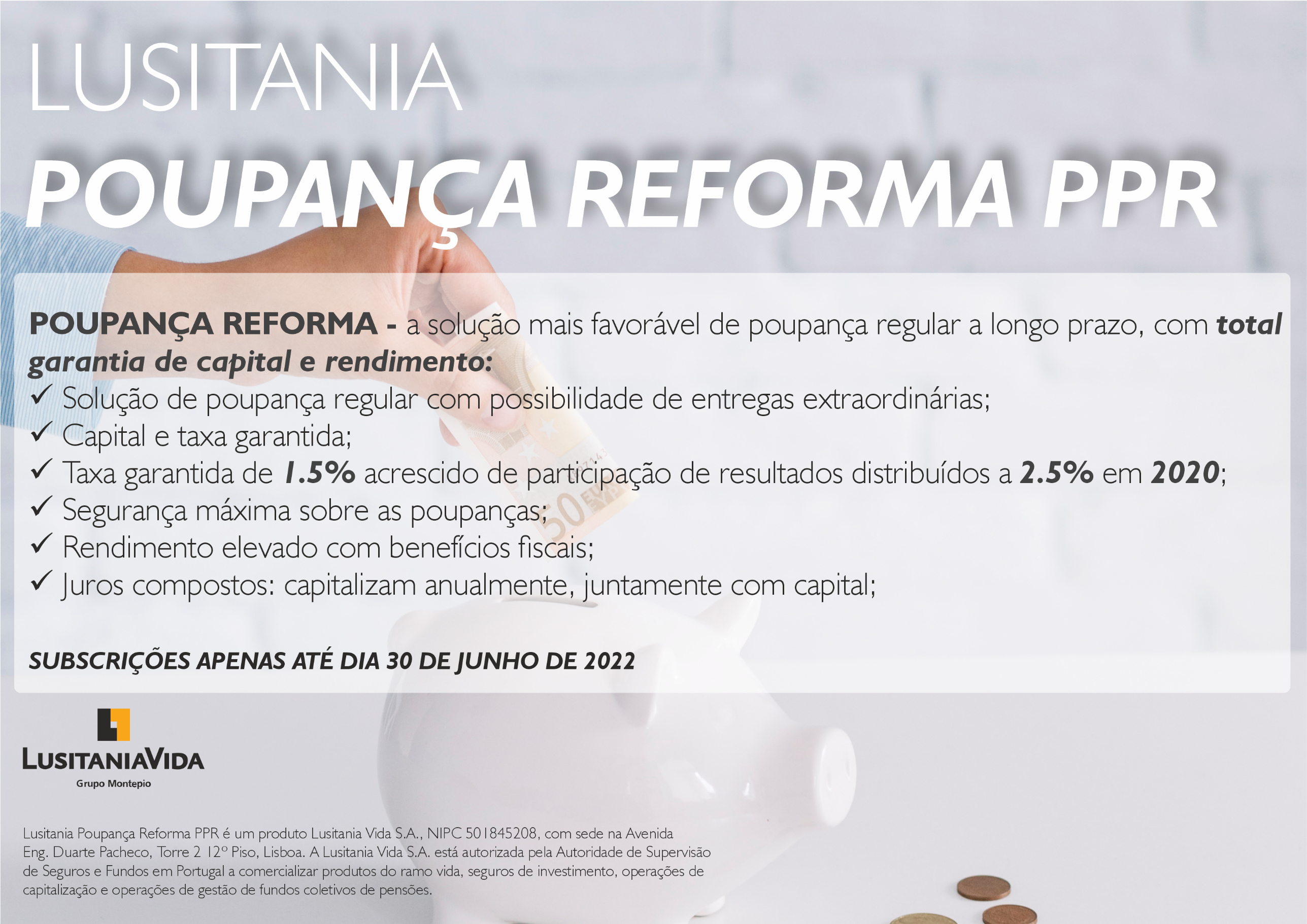 Manter-se-á a comercialização do Lusitania Poupança Reforma PPR, produto escolha da DECO Proteste.
