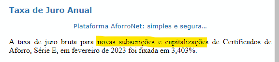 Ao verificar o meu saldo no aforrnet constatei que nuns certificados de aforro que subscrevi em fevereiro de 2021, pagaram-me este mês os juros mas em vez de usarem a taxa de fevereiro de 2023 (3,403%) usaram a taxa de novembro de 2022 (2,492%) a que somaram o prémio de permanência de 0,5%.