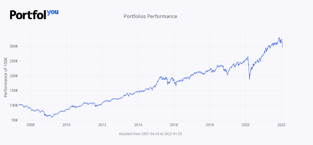 Só realçar uma nota: O backtest pega no portfolio no estado atual, fundos e seus pesos e aplica a simulação dos retornos com precisamente essa composição nos periodos de tempo anteriores.