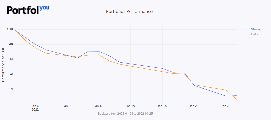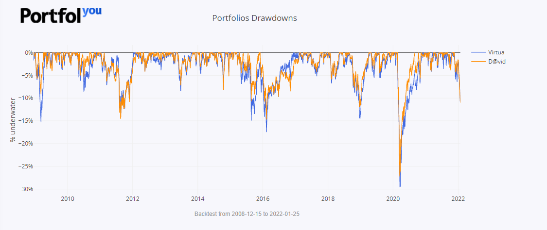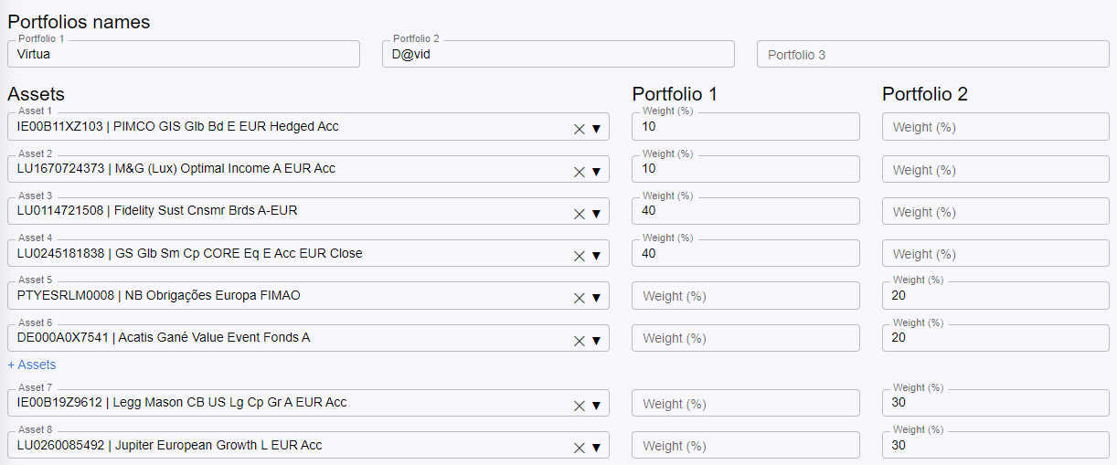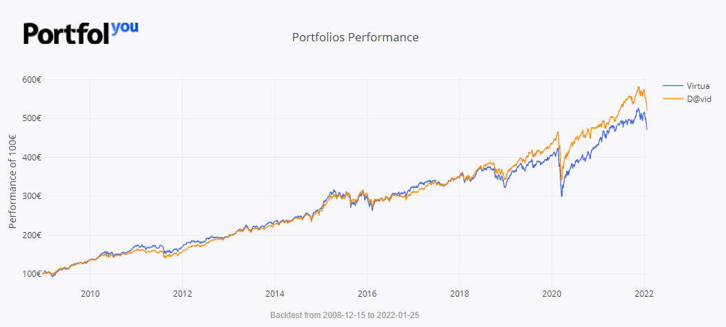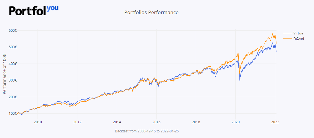 Para quem não lhe apetece ir à Portfolyou este são os outputs. Acham uma comparação justa? Carteiras semelhantes em termos de risco? Até onde devo ajustar a carteira "Virtua"? Estas perguntas tb são para o D@vid.