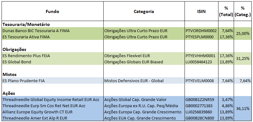 Atualmente tenho cerca de 14.5k investidos na carteira em anexo, que até agora tem tido um bom desempenho. O meu perfil de risco é Moderado.