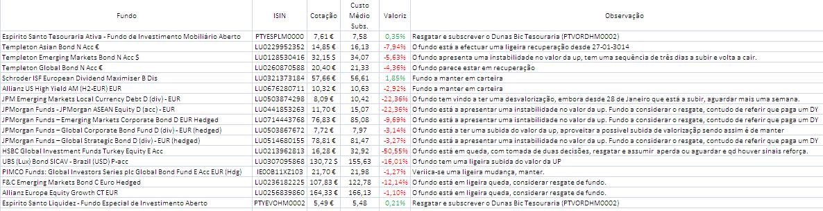 Depois de falar com PFA dizendo que iria manter a carteira, ele responde-me que para atenuar as perdas equacionar os seguintes fundos: