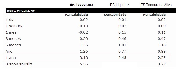 Tenho o ES Monetário e o BIC Tesouraria desde 8-11-2014 com valorização de 1,34% e 1,39% respetivamente. O ES liquidez estaria sensivelmente com 1% de valorização.