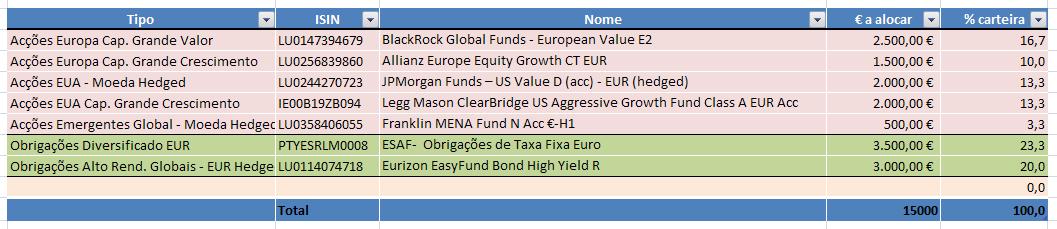 Sinto-me "confortável" com a alocação de ativos e dispersão geográfica, assim como a % de cada fundo de ações. O problema são as obrigações... não sei bem como distribuir a %.