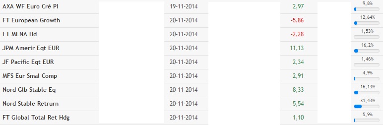 Não...e de facto, para estar actualizado, tambem recorro á carteira virtual criada na Morningstar ou da Bloomberg. Tenho de averiguar com eles. Para o que se designa como banco de investimento, não tem sentido. Aliás, já ha um mês atrás, quando andei a trabalhar na constituição do portefólio ideal, não achei lá muita graça o facto de a partir das 10h00 da noite o site ficar com algumas limitações na área dos fundos.
