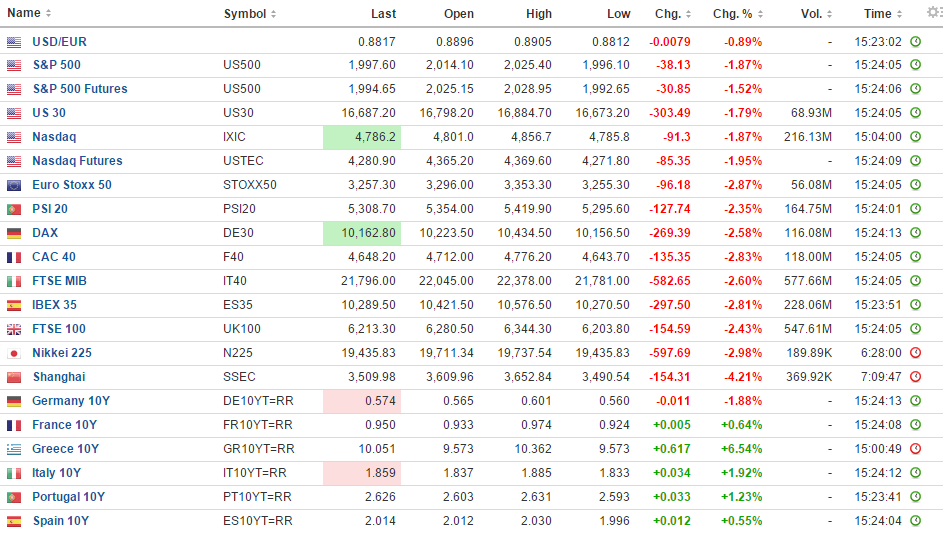 SP500 abaixo dos 2000! Lembro-me de ler em Abril que os analistas davam os 2100 como suporte até ao final do ano...