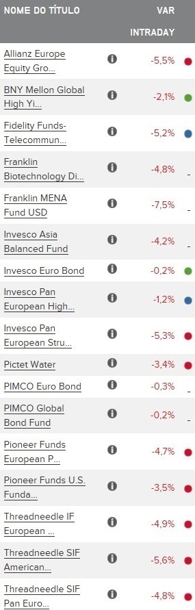 Estive agora a ver, e por exemplo, na minha carteira tenho aqui um, em que eles investem quase tudo em accçoes USA (se nao me falha é um do Novo Banco) e que já estou a perder quase 6%