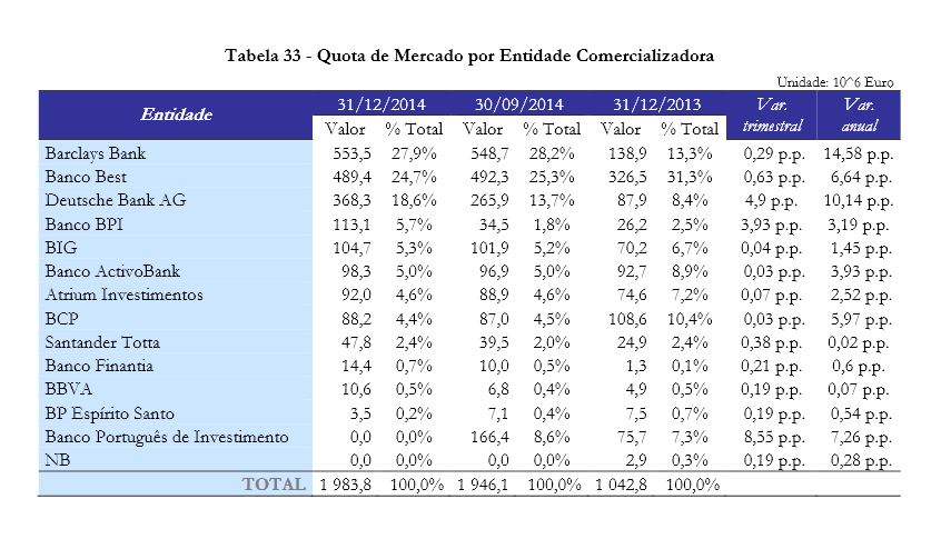 Fonte: CMVM no final de 2014