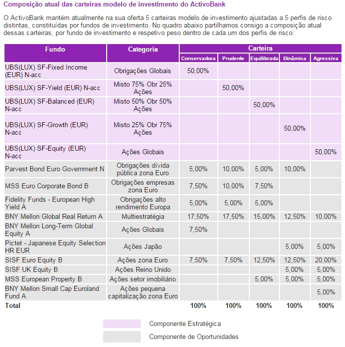 30% num Fundo de obrigações (Jupiter) bastante conservador, 30% num fundo misto da Oddo, focado para o mercado Europeu,