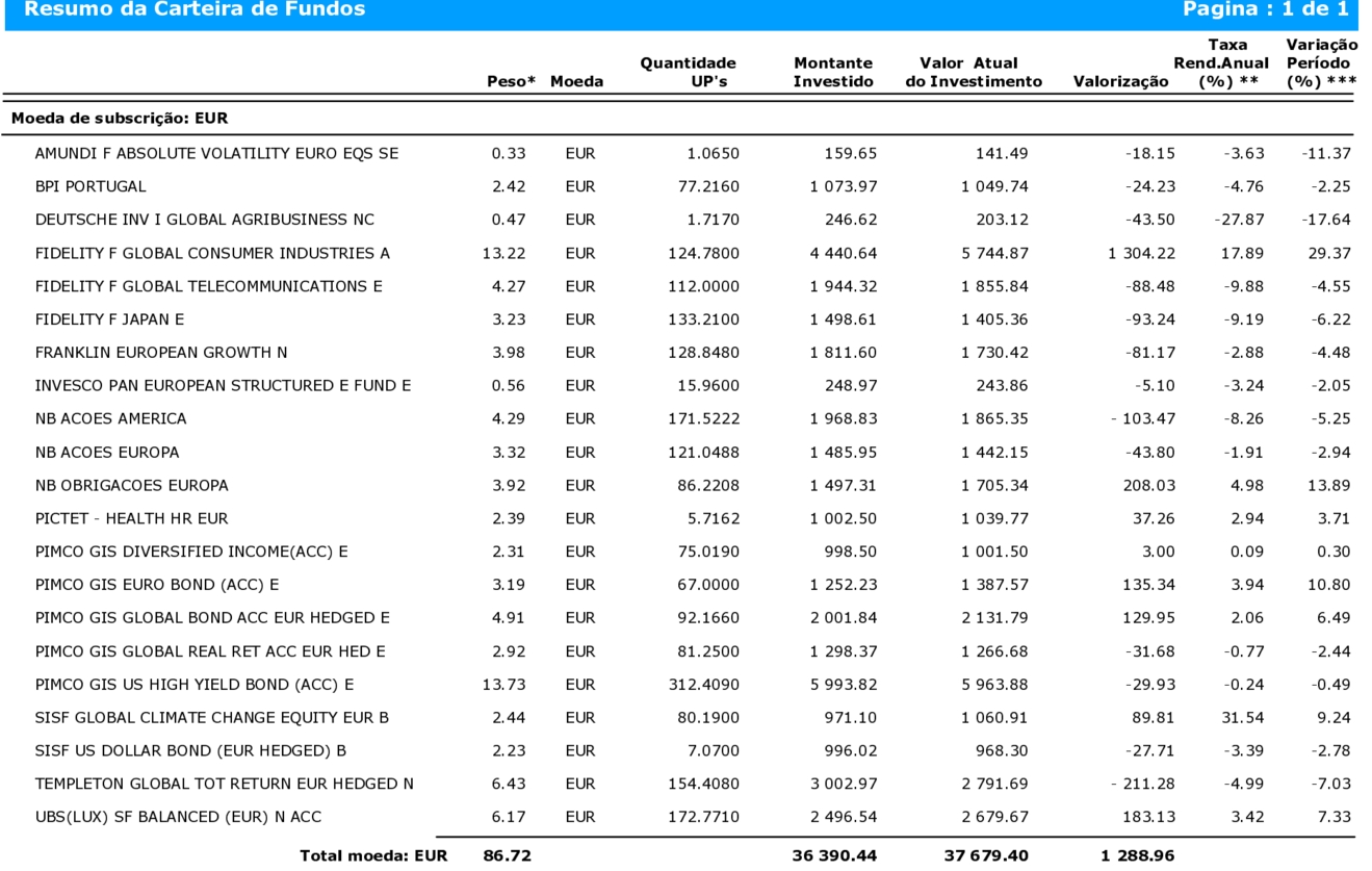 Reforcei os meus dois fundos e se tudo correr bem este será o valor mais baixo a que vou comprar as UP.