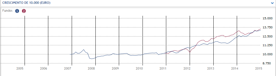 Rentabilidades acumuladas, 2014/2015, de alguns fundos com alta exposição a EUA da 1ª página: