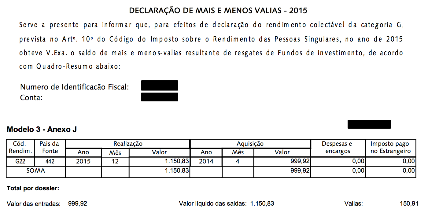 Recebi também a do banco Invest, e essa vem toda bonitinha, já com um quadro de resumo de como deve ficar no impresso do IRS e tudo.