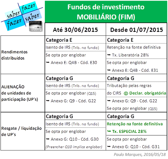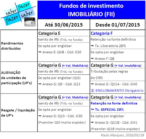 Em relação ao e-balcão, responderam à minha questão logo no dia seguinte e noutra situação, passada cerca de 1h. Mas, no meu caso, informaram mal. Há muita falta de conhecimento. Sendo FI estrangeiros, remeteram-me para o anexo G, para o quadro respeitante à opção de englobamento, que não é o caso, com códigos incorrectos e meteram ao barulho a questão do pré e pós Julho de 2015 que só é aplicada aos fundos nacionais. Eu acho que a culpa nem deve ser das pessoas mas da falta de preparação. De que serve um serviço de informação que desinforma, e que na versão telefónica até é de valor acrescentado?