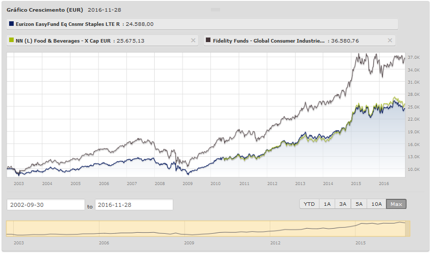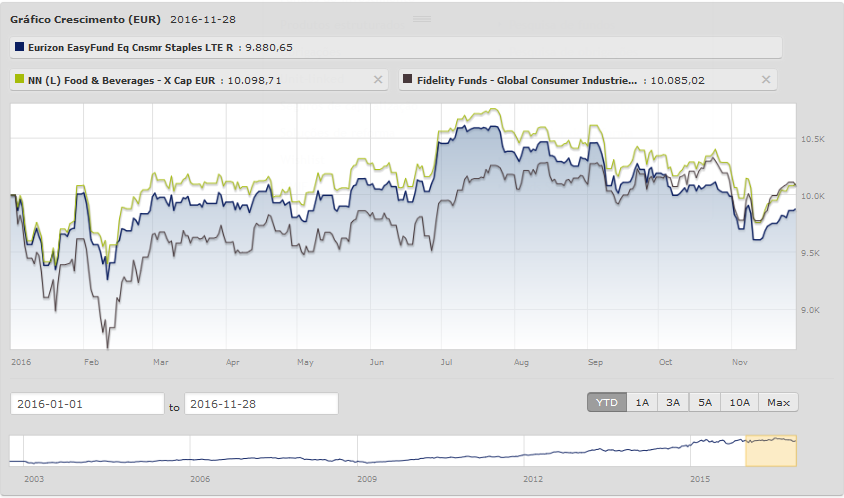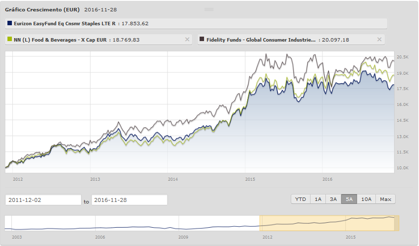 Parece-me um desvio padrão dentro das normas para fundos de acções do sector de consumo, Eurizon menos volátil ( maior exposição a consumo defensivo ), Fidelity mais volátil ( mais diversificado ).