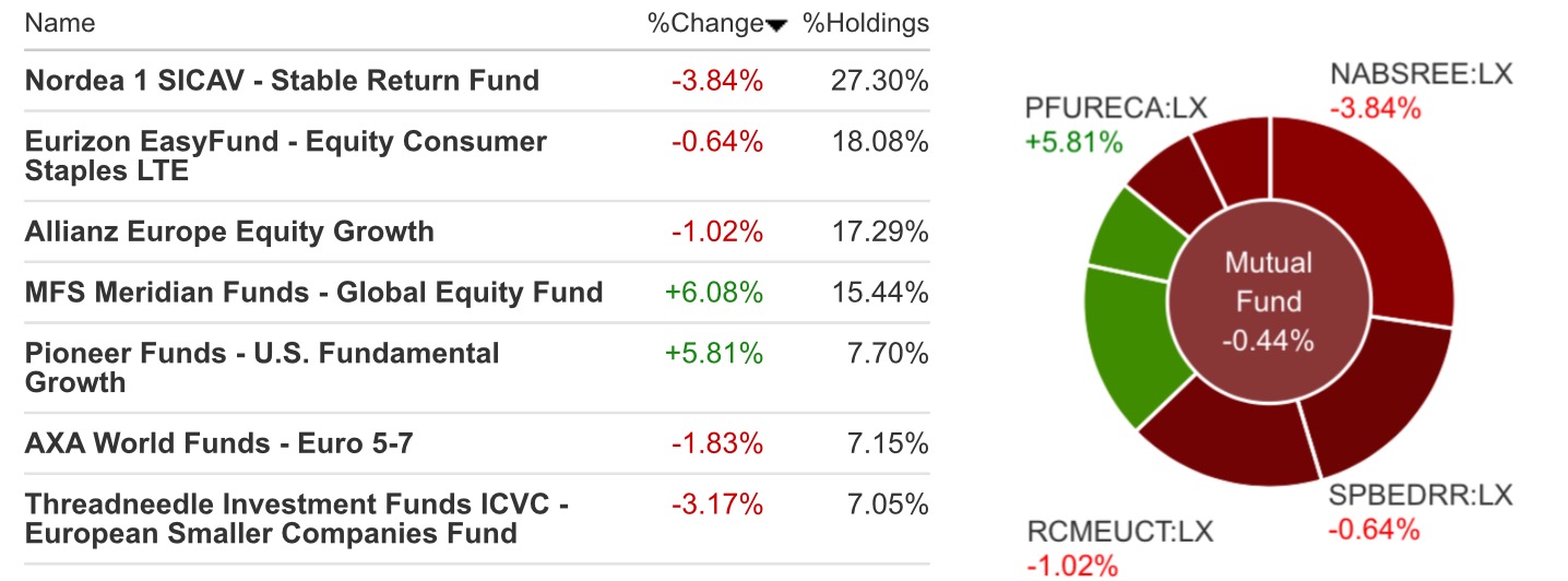 A constituição, do pouco que conheço dos fundos, parecem-me ser muitos fundos de fundos, o que não é muito desejável, e parece-me haver demasiada exposição a uma Europa anémica. O boost que a tua carteira sofreu foi devido à exposição aos EUA, que nas últimas semanas tem sido uma loucura.