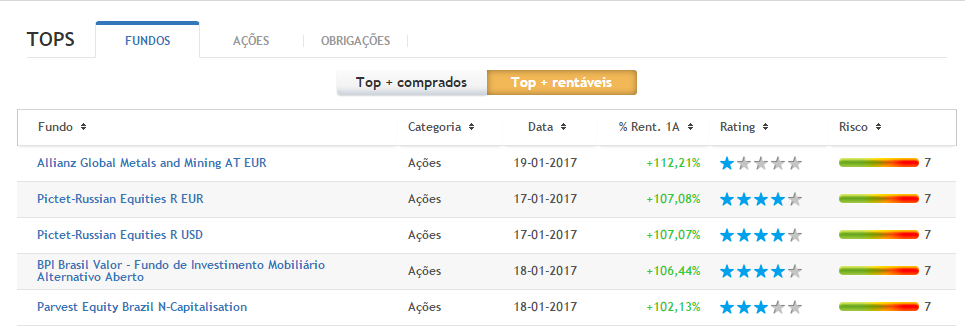 Se esses fundos subiram tanto recentemente (1 ano), dificilmente manterão essa mesma dinâmica de crescimento em 2017. Ou não estarei a pensar bem? Para além disso... " Rentabilidades passadas não são garantia de rentabilidades futuras ".