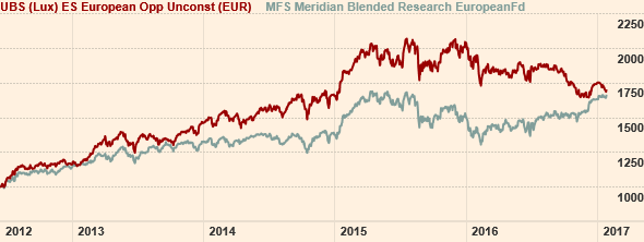 Mas a minha pergunta é mesmo devido ao facto do UBS ter passado de liderar para a cauda do pelotão em apenas 1 ano. Se reparares no gráfico que anexo, quando comparado com o MFS que mencionas, o UBS bate consistentemente esse fundo, até entrar em 2016....
