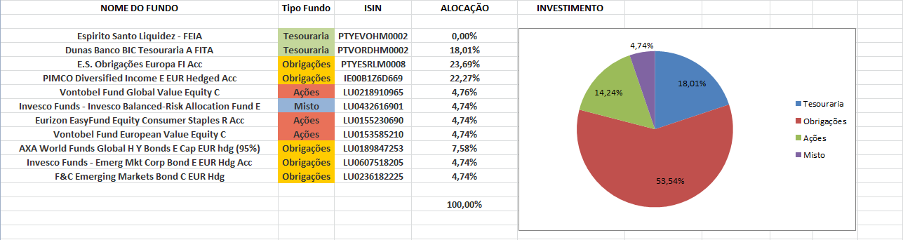 Vou-me iniciar nos fundos com um montante a rondar os 4.000 euros. Sabendo que tenho um perfil de investimento conservador e que pretendo uma alternativa aos tradicionais DP's, e não pretendo mexer no dinheiro no prazo de um ano, o que acham desta carteira que me foi sugerida pelo BEST