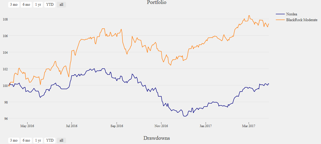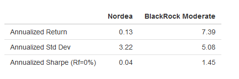 Não sendo fundos iguais, mas sendo ambos inseridos na categoria de mistos moderados, vemos que a diferença é abissal na rentabilidade a 1 ano entre o Nordea Stable Return e o BlackRock Strategic Moderate ( apenas disponivel no Best em papel, tem comissão de compra ).