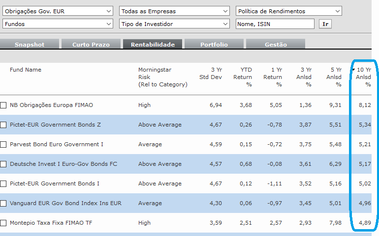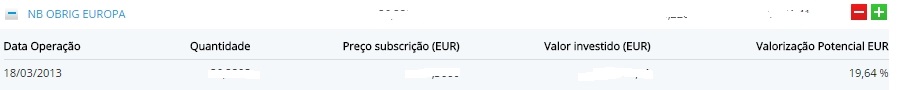 Entretanto lembrei-me também do em tempos famoso NB Euro Bond LU0062574610, se bem se lembram era um fundo praticamente igual ( mesmo gestor e tudo ) mas com a diferença de ter menos comissão de gestão e de ter o seu domicilio no Luxemburgo, a menor comissão era praticamente a única diferença que se via na rentabilidade que era maior no NB Euro Bond, mas acabava-se na altura por se optar pelo Ob. Europa porque  a rentabilidade era liquida neste último.