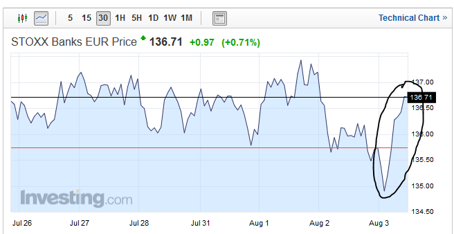 Gosto de pensar que sempre que há subidas no indice dos bancos ao fim de uns dias as bolsas europeias sobem :D mas o que se pode ver é que falta perfurar os máximos...talvez estejam á espera do último trimestre.
