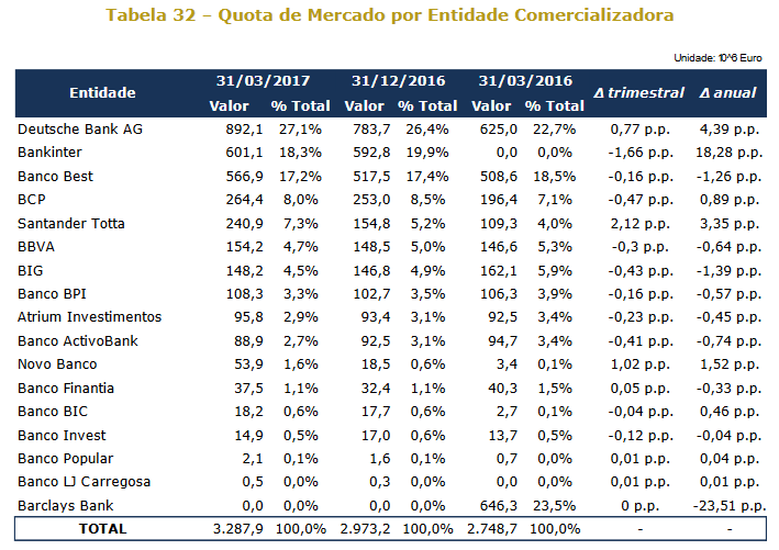 Atenção que não fui ver se algum banco tem este último, até podem nem ter.