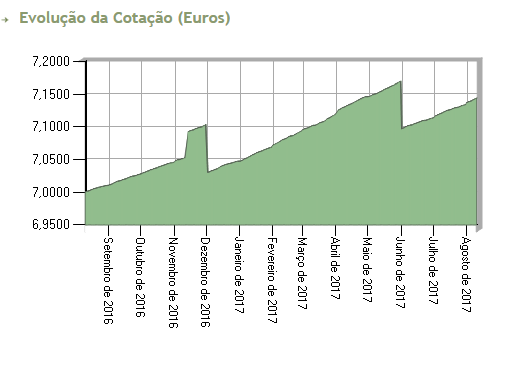 A tua posição não importa, até podes ter entrado um dia antes do pagamento do dividendo que o recebes na mesma na sua totalidade, as contas são feitas pelo valor do dividendo vezes o número de UPs que tens, outra coisa importante é que uma vez que o fundo em vez de acumular naquele dia ele está a pagar, o fundo tem a tendência a cair nesse dia, por vezes nem se nota mas algumas vezes sim, onde se nota muito isso são em fundos imobiliários, deixo-te uma imagem de um fundo imobiliário da CGD só para veres no gráfico o que acontece sempre que paga dividendo de 6 em 6 meses.