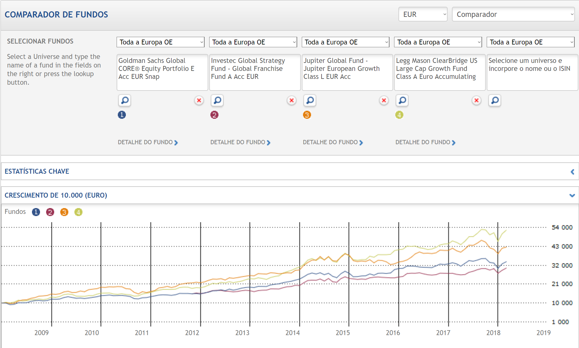 Mas entre esses e o Legg Mason ClearBridge US Large Cap Growth Fund Class A Euro, prefiro este porque as FEE's são mais baixas e a 10 anos estão similares. Para além disso o Legg Mason apenas tem minimo de 100€ para a subscrição mas depois os reforços são 1UP.