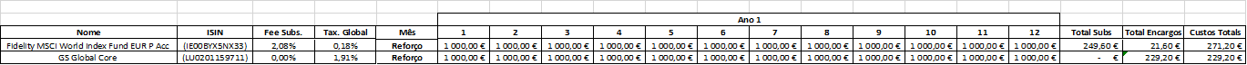 Fidelity MSCI World Index Fund EUR P Acc    (IE00BYX5NX33)  2,08% 0,18% Reforço   1 000,00 €   1 000,00 €   1 000,00 €   1 000,00 €   1 000,00 €   1 000,00 €   1 000,00 €   1 000,00 €   1 000,00 €   1 000,00 €   1 000,00 €   1 000,00 €          249,60 €            21,60 €          271,20 €