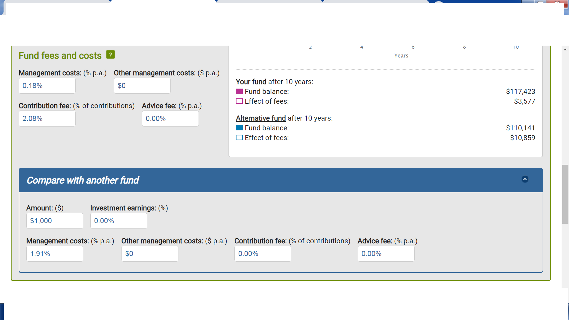 Olhando para um investimento de 10k a 10 anos no Acatis Gané com comissão de 1,8% + 1%, comparando com outro fundo apenas com comissão de 2%, e com média de 5,82%/ano ( média do Acatis ), acabamos por obter melhores resultados no Acatis, mesmo com reforços anuais.