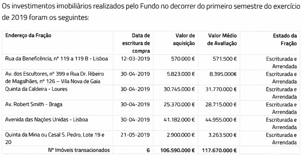 2 - A aquisição de activos no periodo a que o RC diz respeito demonstra uns bons investimento de acordo com o valor pago e com o registado no valor médio das avaliações feitas. Tirei um screenshot para ser mais facil ver, se isto não é saber fazer bons negocios, não sei o que é. A distorção de preços está nesta ordem de grandeza num periodo menor que 6 meses? Só nestes seis imoveis, entre o valor de aquisição e o valor médio de avaliação realizada para o fundo distam 11.080.000 € (~10,4 %). Uma dinâmica destas certamente funcionaria para os dois lados.
