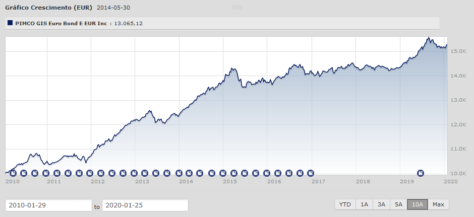 Detenho uma pequena participação no seguinte fundo PIMCO GIS Euro Bond E EUR Inc - IE00B0M2YC33, que supostamente distribui rendimentos trimestralmente.